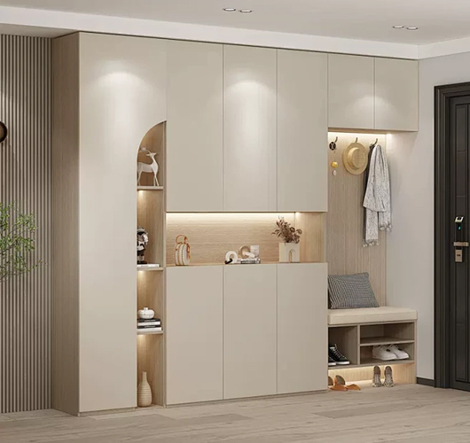 对于小户型鞋柜设计,可以考虑以下几种方式:垂直式设计:充分利用墙面空间,将鞋柜设计为垂直式,这样可以节省地面空间,同时增加储物空间。内嵌式设计:如果墙面有凹槽或者凸起,可以考虑将鞋柜内嵌其中,这样可以更好地利用空间,并且使鞋柜更加隐蔽、美观。